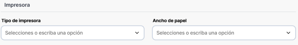 - Tipo de impresora: Las opciones son Grande/Termino. Grande es para impresoras tipo carta, mientras que la opción Térmica, es para impresoras que regularmente se utilizan en puntos de ventas o como impresoras fiscales.